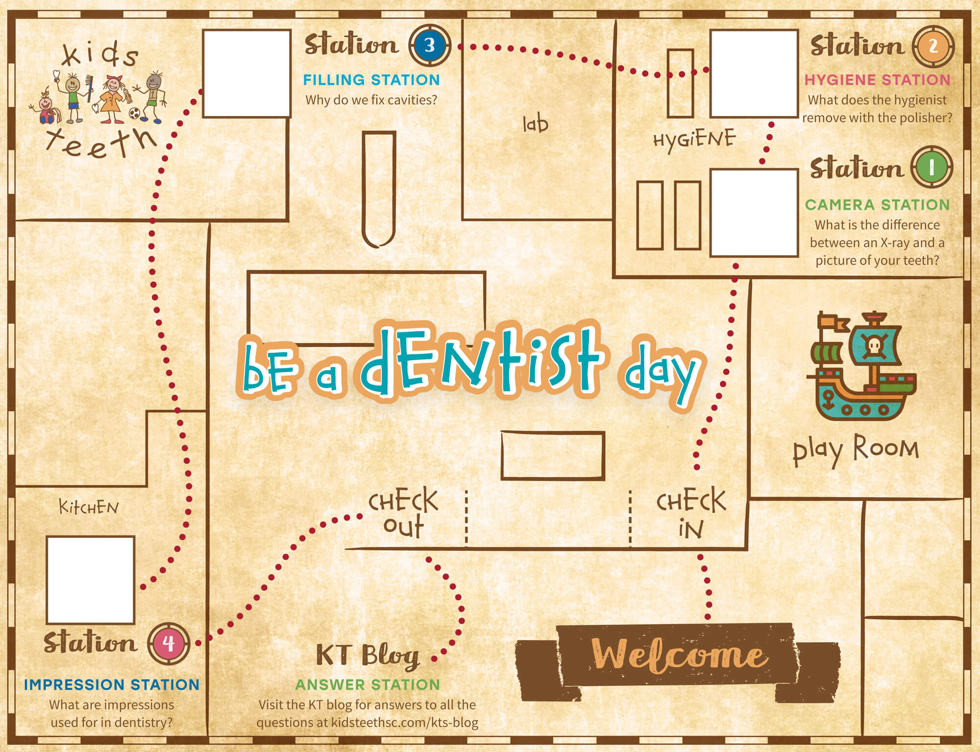 On Saturday, April 27th, 2019 we invited children ages 7-12 to join us to “be a dentist” for a day at Kids Teeth. Children had the opportunity to experience the following four stations outlined on a treasure map: